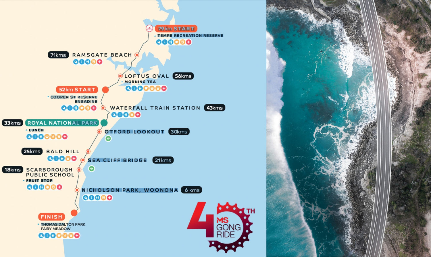 A successful Gong Ride is all about preparation. While you can work on your general fitness in the lead up to the Gong ride there is no substitute for building up the number of km's you ride. This not only ensures your legs and lungs are ready for the task ahead but just as importantly your bum is also tuned-up for a full day in the saddle and your bike handling skills are also where they need to be. When it comes to the climbs and descents you need to be the master of your brakes and gears.