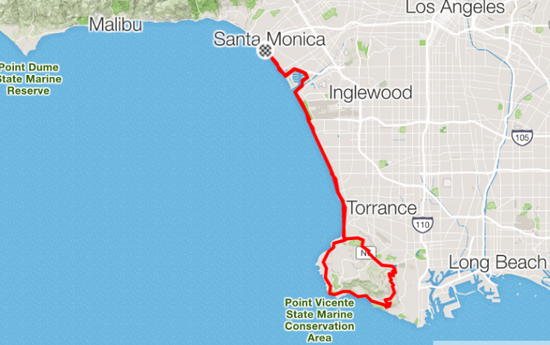 Santa Monica to Palos Verdes - 59.07 mi / 95.07 km.