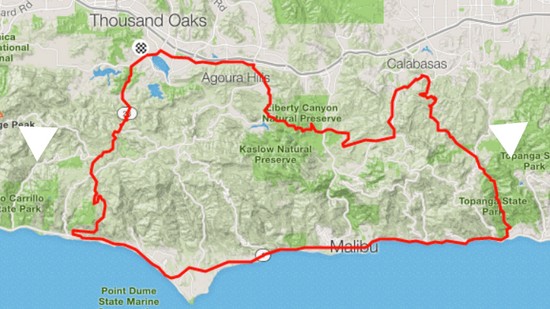 - Thousand Oaks to the Santa Monica Mountains - 31.84 m / 51.24 km.