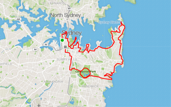 City to Centennial Park via The Rocks and Royal Botanic Gardens - 15 mi / 23 kmCity to Centennial Park - 9 mi / 13 kmCity to Bronte Beach via Watson's Bay 30 mi / 48 kmAkuna Bay and West Head - 100km / 62mi